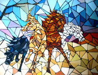 Parallèlement à ces thèmes figuratifs, un autre genre est développé: le symbolisme. Déjà les couleurs sont beaucoup plus vives et des mosaïques apparaissent, montrant bien l'influence du vitrail. Mais le désir non plus de reproduire mais de créer se fait sentir. Voulant faire un mariage stylistique et thématique, Caro se consacre maintenant à un "néo-figuratif" complètement personnel: les lignes noires deviennent symboliques (tout est lié) et représentent l'Energie qui donne vie et parcourt toute chose. L'interpénétration des éléments est essentiel. Considérant que ces dernières caractéristiques sont réellement sa signature, Caro va développer ce style, satisfaisant car unificateur et finalisant ses recherches (voir "peintures"). L'hermetisme prend une place prépondérante.